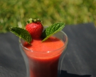 Gaspacho de fraise : Lavez les fraises. Équeutez les, coupez les en morceaux et réservez en...