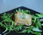 Sur les feuilles de brick, disposez un peu de miel à l'estragon, le fromage de chèvre puis les pignons et raisins secs.